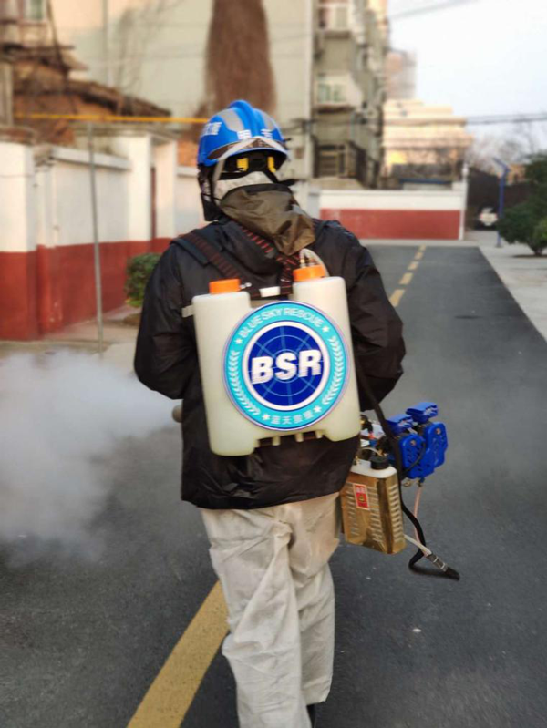消殺工作還是有一定的風險,在做好自身的防護后,背上重達30斤的水箱,拿起我們的專屬武器---20多斤重的彌霧機,按照街道的工作安排,跟隨隊友一起走遍兗州的各個角落,用我們的腳步去丈量兗州這座小小的城,火車站、酒仙橋街道、鼓樓街道、龍橋街道.....