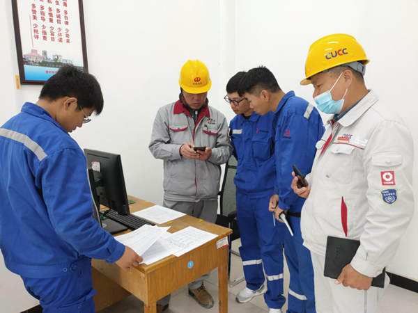 中聯水泥廠安環部雙預防管理人員與兗州中材建設有限公司白坪分公司安全管理人員,操作雙預防企業管理軟件,對后期企業安全隱患排查、設備設施管理、職工崗位職責等模塊存在的問題逐一進行討論。