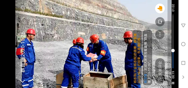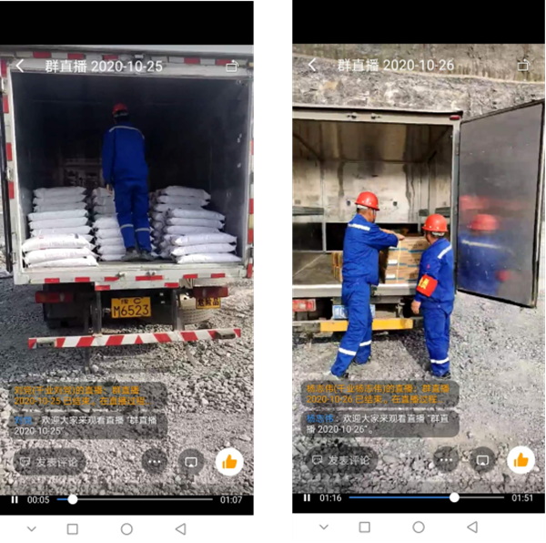 當運輸巖石粉狀大包和電子雷管的車到達作業地點后,對數量進行清點,卸車。直播開始。