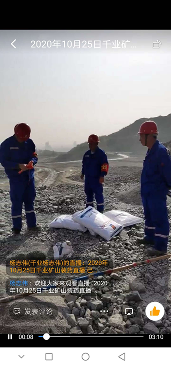 近日,焦作市公安局支隊領導按照河南省廳民爆未端管控全視頻要求,建立覆蓋全市可視頻的釘釘群,組織了焦作市轄區爆破作業人員本群,對爆破作業進行全程跟蹤管理。馬村分公司積極響應南省民爆末端管控全視頻要求,組織爆破作業相關人員進入“焦作市爆破作業管控群”,利用將爆破現場進行直播,主要直播人員到位情況(三大員及工程技術人員是否到位)、卸車、電子雷管入庫、裝填、起爆等視頻。