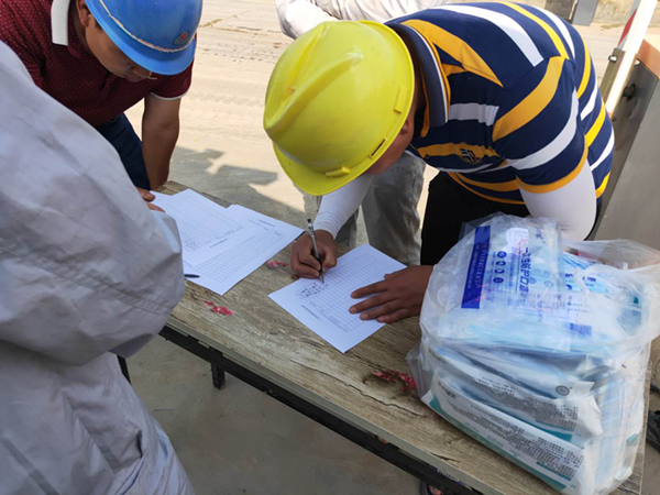 儀式開始前,寶豐分公司為全體員工發(fā)放醫(yī)用防護口罩并進行組織動員行動。