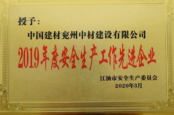 2020年4月3日,在江油市安全生產(chǎn)委員會組織召開的關(guān)于安全生產(chǎn)工作會議上,兗州中材建設(shè)有限公司江油分公司被評為“2019年度安全生產(chǎn)工作先進企業(yè)”稱號。 2019年江油分公司認(rèn)真貫徹政府相關(guān)部門及上級有關(guān)安全文件精神和指示,嚴(yán)格落實公司安全部相關(guān)制度及要求,切實強化紅線意識,建立以及完善安全生產(chǎn)責(zé)任體系和各類安全規(guī)章制度及操作規(guī)程,確保責(zé)任逐級落實;通過集中學(xué)習(xí)、網(wǎng)絡(luò)宣傳、現(xiàn)場宣貫等多種方式精心組織“安全生產(chǎn)月”及各項“安全生產(chǎn)應(yīng)急演練”等活動,積極營造“上下重視,全員參與”的安全氛圍。2019年,江油分公司多次積極迎接并配合省、市、區(qū)等相關(guān)單位進行安全生產(chǎn)檢查并得到了高度評價,被當(dāng)?shù)卣u為安全生產(chǎn)標(biāo)桿企業(yè),提高了企業(yè)的知名度,全面完成了2019年度安全生產(chǎn)目標(biāo)任務(wù)。