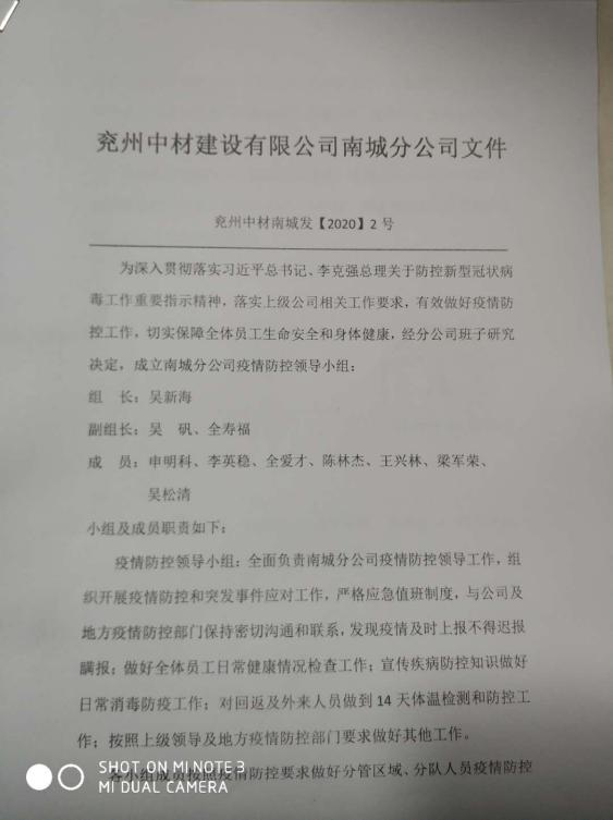 面對此次疫情,兗州中材始終堅持“疫必戰,戰必勝”的決心和信心,展現了危機關頭的責任與擔當,以實際行動踐行了礦山人的初心和使命。我們堅信:有黨中央的正確領導,有成千上萬廣大一線醫護人員的精心護理治療,有14億中國人民的共同努力,我們一定能夠打贏疫情防控的攻堅戰和阻擊戰!我們堅信:在上級各級黨委和的正確領導下,在公司黨委的帶領下,經過公司廣大黨員干部和全體職工的共同努力,我們一定能夠圓滿完成2020年確定的各項工作任務!