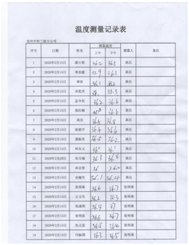 落實措施,扎實開展防控工作。分公司設立疫情防控點,配備防護口罩、手套、防護鏡、體溫計及測溫槍、酒精、84消毒液、噴霧器等防護物資。嚴格控制返程人員,對居住或經過疫情防控重點區域人員,要求暫不返回項目部,居家隔離自我觀察;要求返回項目部人員,返程路上嚴格落實個人防控措施,制定記錄表,對返回人員嚴格檢查、登記;返回項目部后,在項目部內自行隔離14天,每天早晚測量體溫并做好記錄。