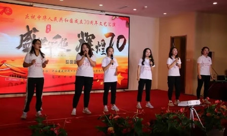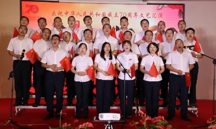 為慶祝新中國成立70周年 ,9月29日下午,由兗州中材和山東地質總隊聯(lián)合舉辦的“盛世華誕 輝煌70”國慶文藝匯演隆重舉行。 一首首優(yōu)美的歌聲、一段段好看的舞蹈表達了對祖國母親生日的祝福。一首《國家》,把祖國這70年來的情懷用歌曲的形式表達,祝愿我們祖國的明天會越來越好,家是國,國更是家。一首《映山紅》,那優(yōu)美的旋律、深情的歌詞表達了對紅軍的熱愛和對英雄的崇敬之情。一首《今天是你的生日》表達了對祖國母親深深的熱愛和祝福。本次匯演形式多種多樣,精彩紛呈。包括舞蹈、合唱、獨唱、相聲小品、樂器獨奏等。          通過本次文藝匯演增進了兗州中材和山東地質總隊的友誼,展現了“不忘初心、牢記使命”主題教育的新成果,增強國慶的節(jié)日氛圍,更加增強全體職工的愛國之心。 |