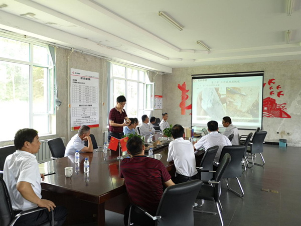 郭總、柯總及相關領導首先在會議室聽取舒蘭項目部建設情況匯報,以及《季德鉬礦地質簡述及礦石損失、貧化管理方案》的專題匯報,并查看了礦山相關礦石、巖石標本,了解季德鉬礦礦石品位及分布情況。
