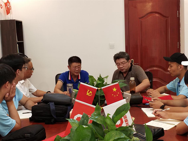 2019年7月18日,山東理工大學資源與環境工程學院的李院長、李書記、各位教授、輔導員和老師們一行來寧陽分公司看望本學院的9名學生,并對寧陽分公司綠色礦山建設情況進行訪談。
