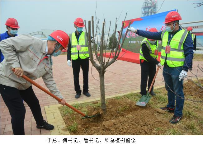 中材礦山總會計師于劍平、兗州中材黨委副書記何芳訓、紀委書記魯臣參加了泰安分公司落虎山水泥用灰?guī)r礦開展“黨旗紅礦山綠”主題植樹節(jié)活動。