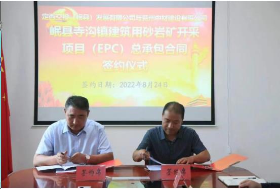 | 8月24日上午,定西交投(岷縣)發(fā)展有限公司與兗州中材建設(shè)有限公司簽署岷縣寺溝鎮(zhèn)建筑用砂巖礦開采項目(EPC)總承包合作協(xié)議,在岷縣投資建設(shè)綠色、環(huán)保礦石開采加工生產(chǎn)線。