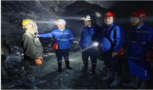 張漢武總經(jīng)理一行檢查了和龍分公司Ⅶ號礦組632中段和656中段,并在現(xiàn)場親切詢問井下員工的工作情況,詳細了解礦組頂板、通風等安全管理措施,強調(diào)一定要做好頂板檢撬及支護工作,保證井下通風良好。隨后聽取了和龍分公司經(jīng)理石恩國黨建工作、安全生產(chǎn)、經(jīng)濟運行情況匯報。