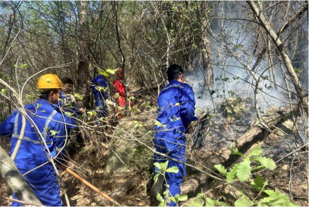 清明將至,當(dāng)?shù)卮迕穹傧銦埣漓?,造成飛火引起了火災(zāi)。因起火點(diǎn)位于山地深處,遠(yuǎn)離公路,滅火任務(wù)困難,距離水源較遠(yuǎn),在項(xiàng)目副經(jīng)理向孝陽(yáng)同志和安全副經(jīng)理張目利同志的帶領(lǐng)下,大家紛紛拿起鐵鍬、釘耙等工具,前往起火點(diǎn),清理易燃物,鏟土澆蓋火星子,為下一步工作做好鋪墊,終于在大家的努力下,水源送到了山頂,火情被一一撲滅。